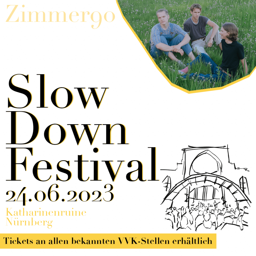Das Slow Down Festival ist eine Kooperation von St. katharina open air & dem Club Stereo und wird unterstützt von egoFM, BY-on, dem Curt Magazin Nürnberg, dem Verband für Popkultur in Bayern e.V. (VPBy) und Pop Rot Weiss.